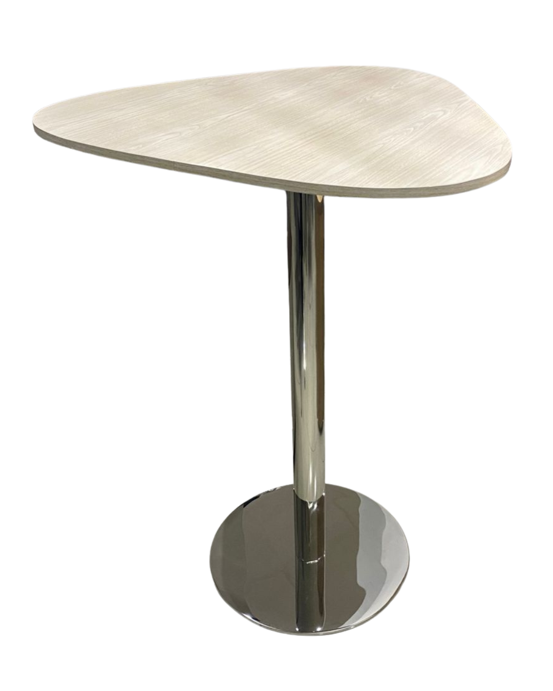 Mesa alta de la linea grey, con base plato redondo con base al suelo, con cubierta en melamina varios tonos a elegir, de .80cm de diametro, medidas de la base 1.13m de alto x .50cm de diametro.