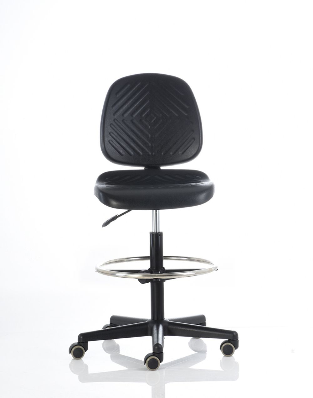 Respaldo y Asiento En poliuretano inyectado tipo piel integral, color negro con relieves