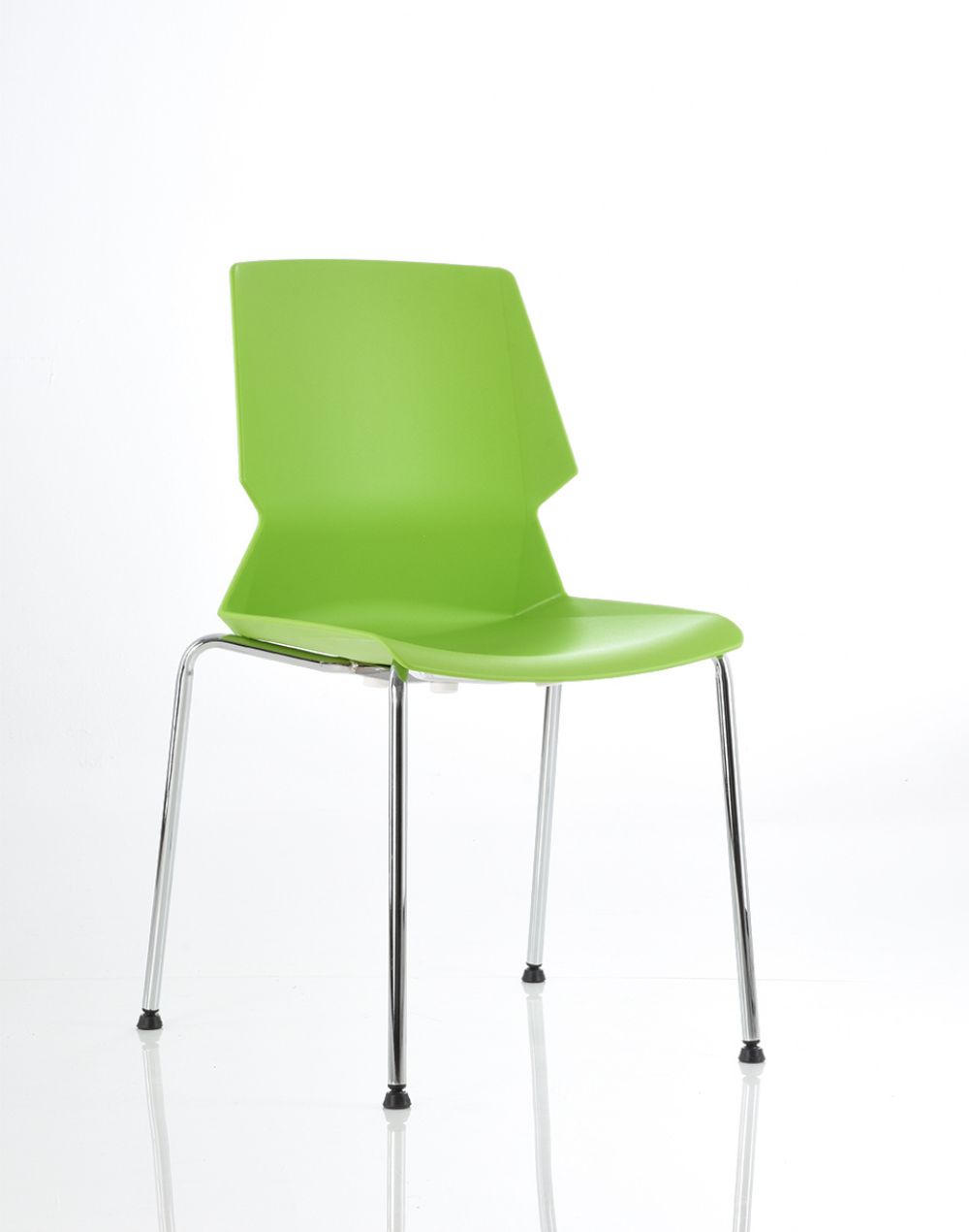 Respaldo y asiento Concha plastica de una sola pieza Material Fabricada en polipropileno de alta resistencia Base De 4 patas tubular de 3/4 de pulgada de diametro en acero Cal 18, con terminacion en cromoDeslizadores En cada pata de nylon