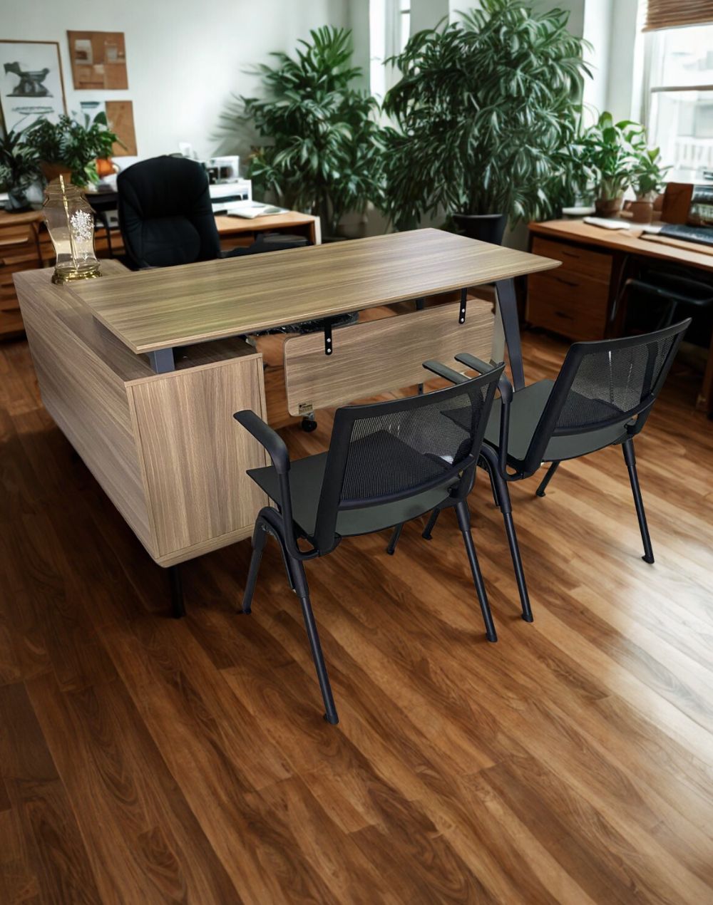 Por su diseño compacto y versátil, suelen colocarse frente a escritorios, en recepciones, consultorios, salas de espera o salas de juntas. Además, es común que se combinen visualmente con la silla ejecutiva del espacio, creando un conjunto armónico y coherente.