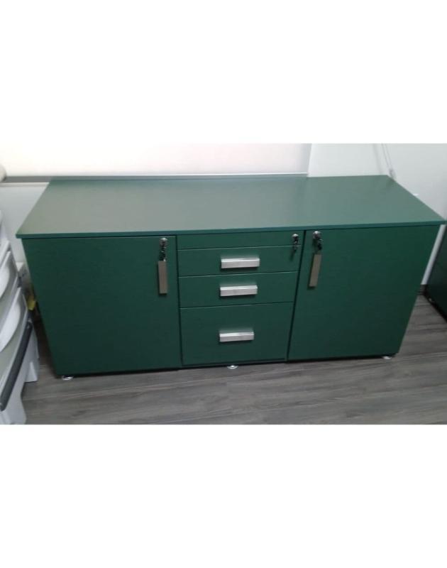 Credenza con un pedestal de 3 gavetas (2 papeleros y 1 de archivo) tamaño oficio