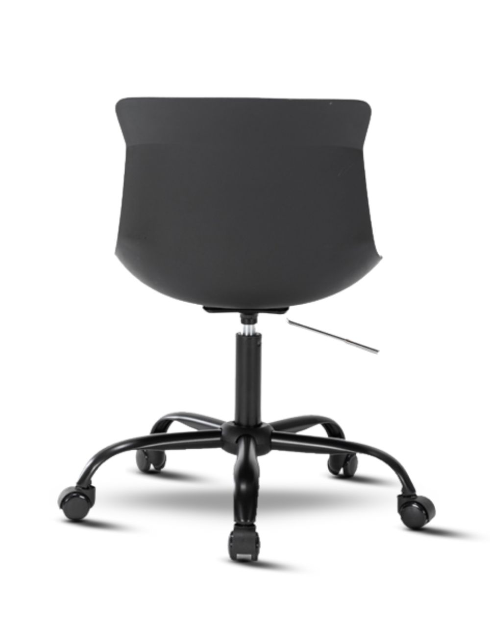 Respaldo y asiento en una sola pieza en forma de concha de polipropileno color negro.