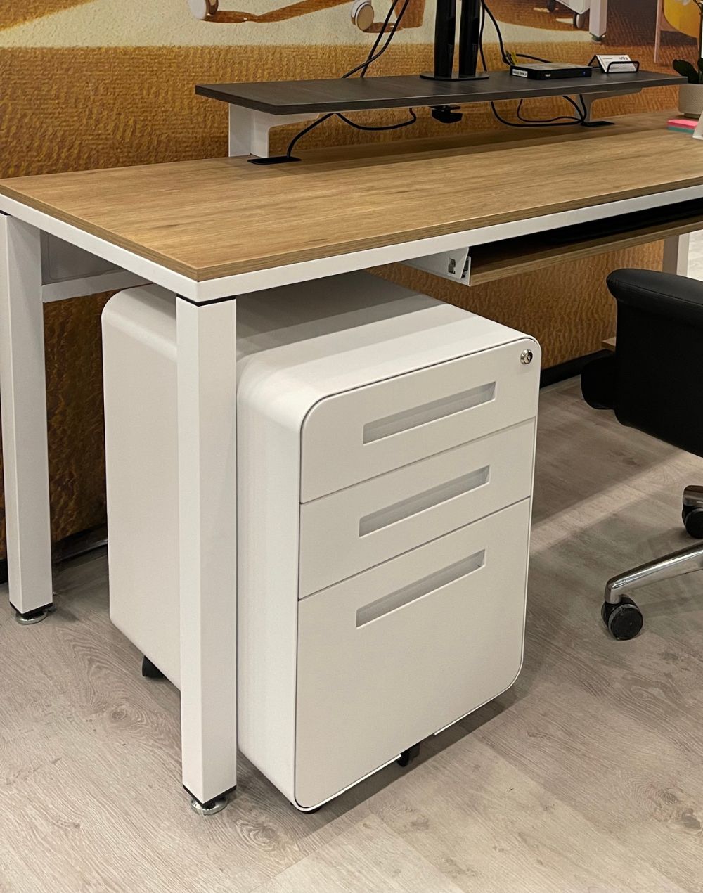 Contiene 5 rodajas en la parte inferior del archivero, 2 de las cuales pueden girar 360º y se pueden bloquear.