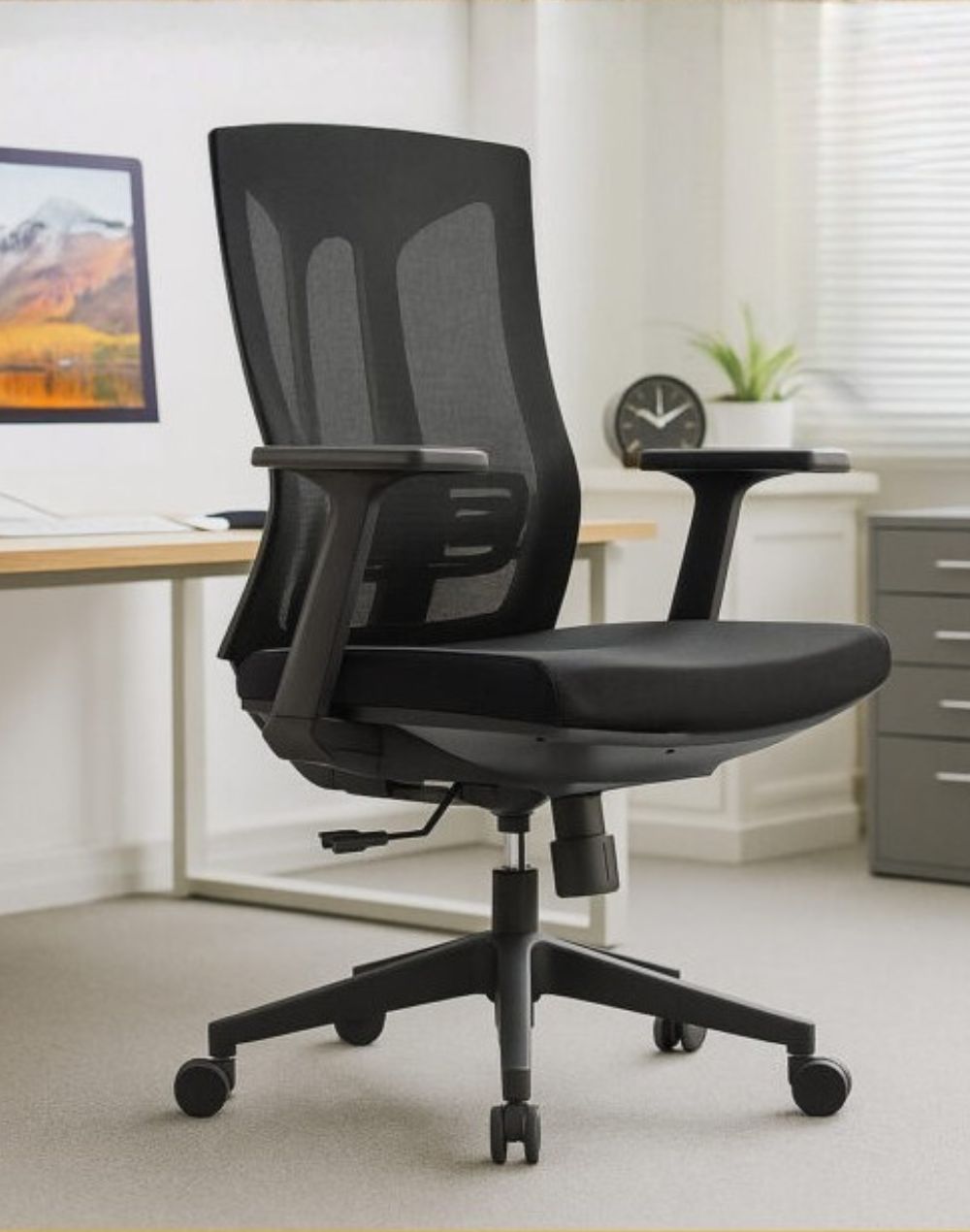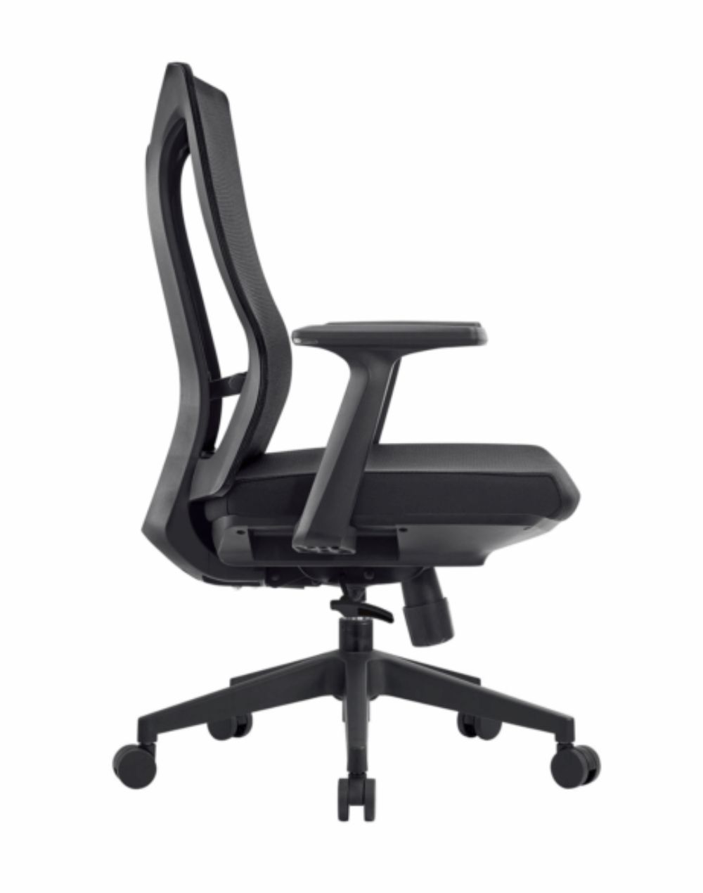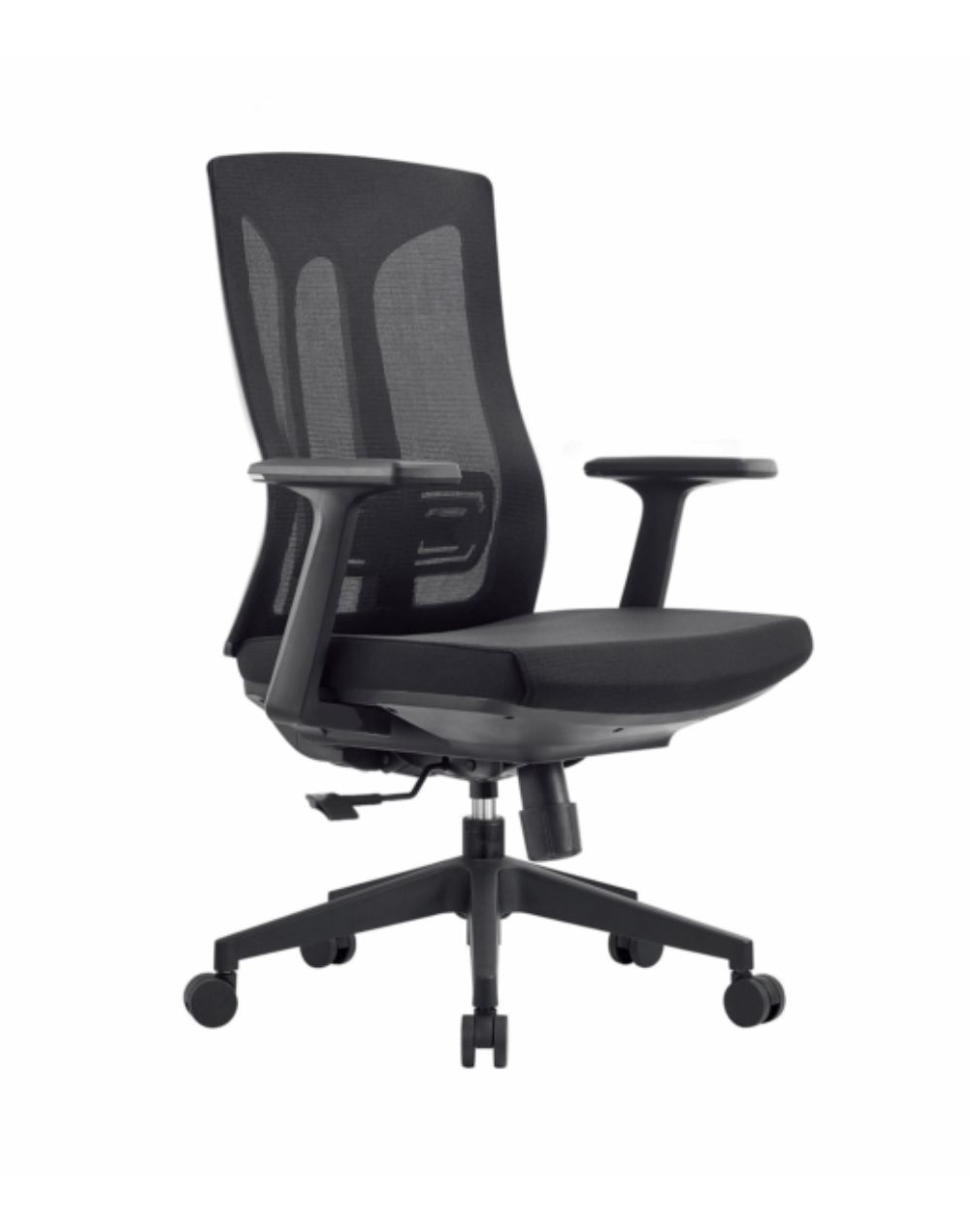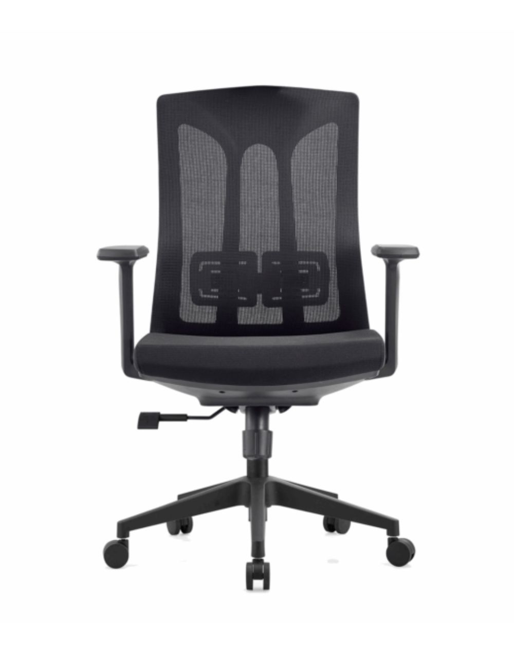 Respaldo En mesh color negro Estructura Color negroAsiento Tela color negroDescansabrazos fijos Mecanismo Ajuste de altura, ajuste de respaldo, Bloqueo de inclinacion del respaldo, Ajuste tension de inclinacionElevacion Con piston de gas Base Nylon Soporte de peso 135 kg
