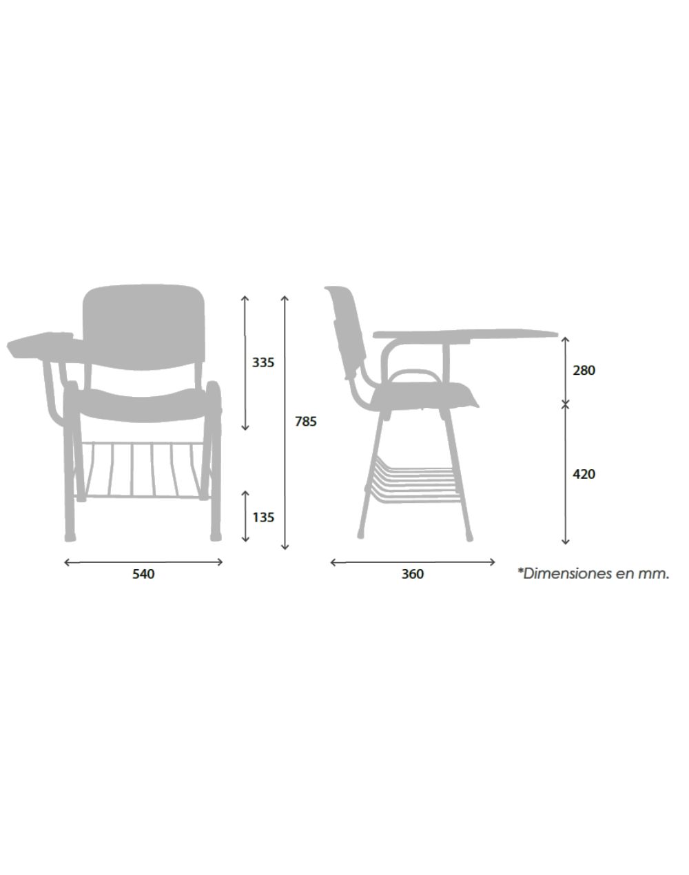 Asiento y Respaldo en dos piezas en polipropileno de alta resistencia y duración.