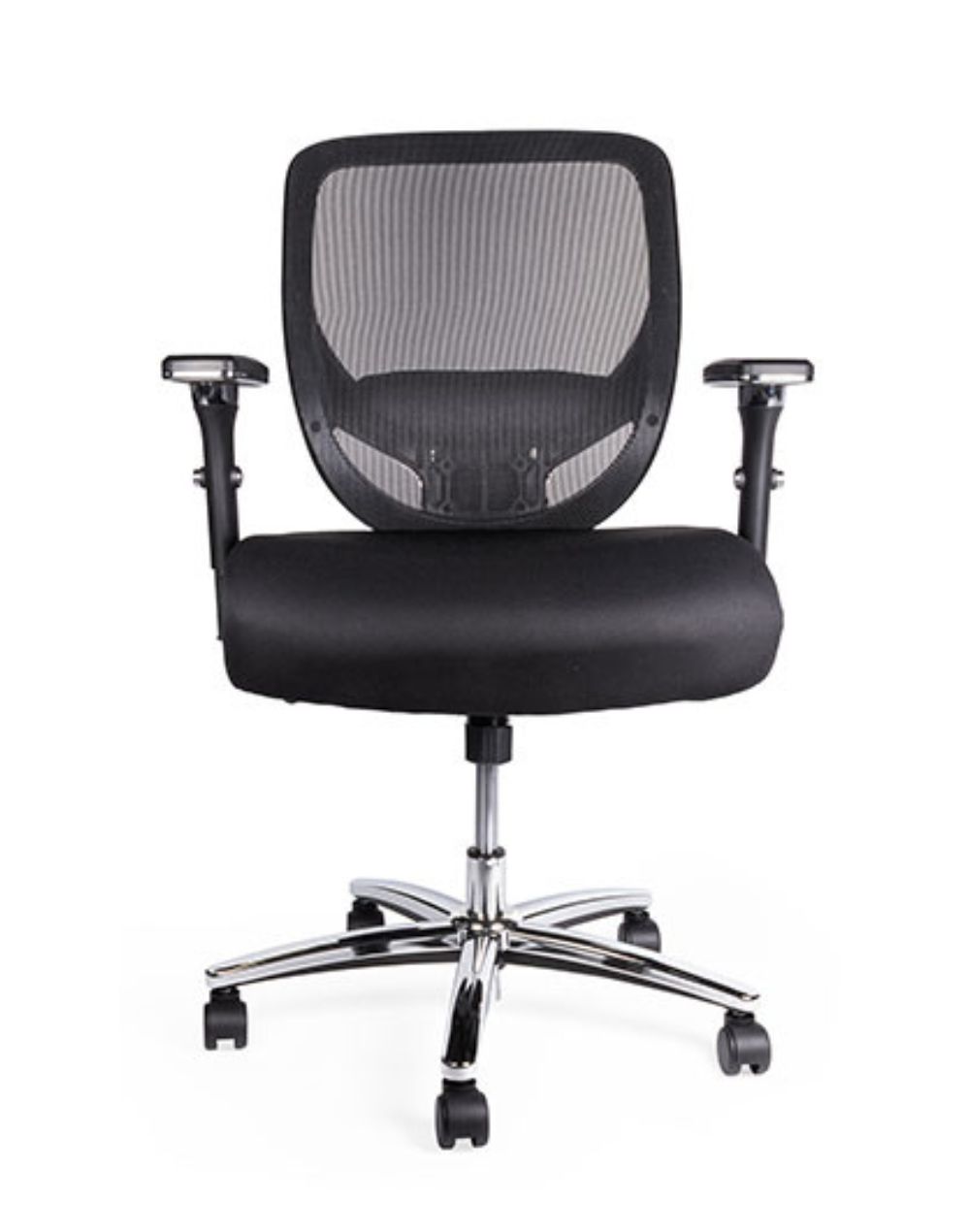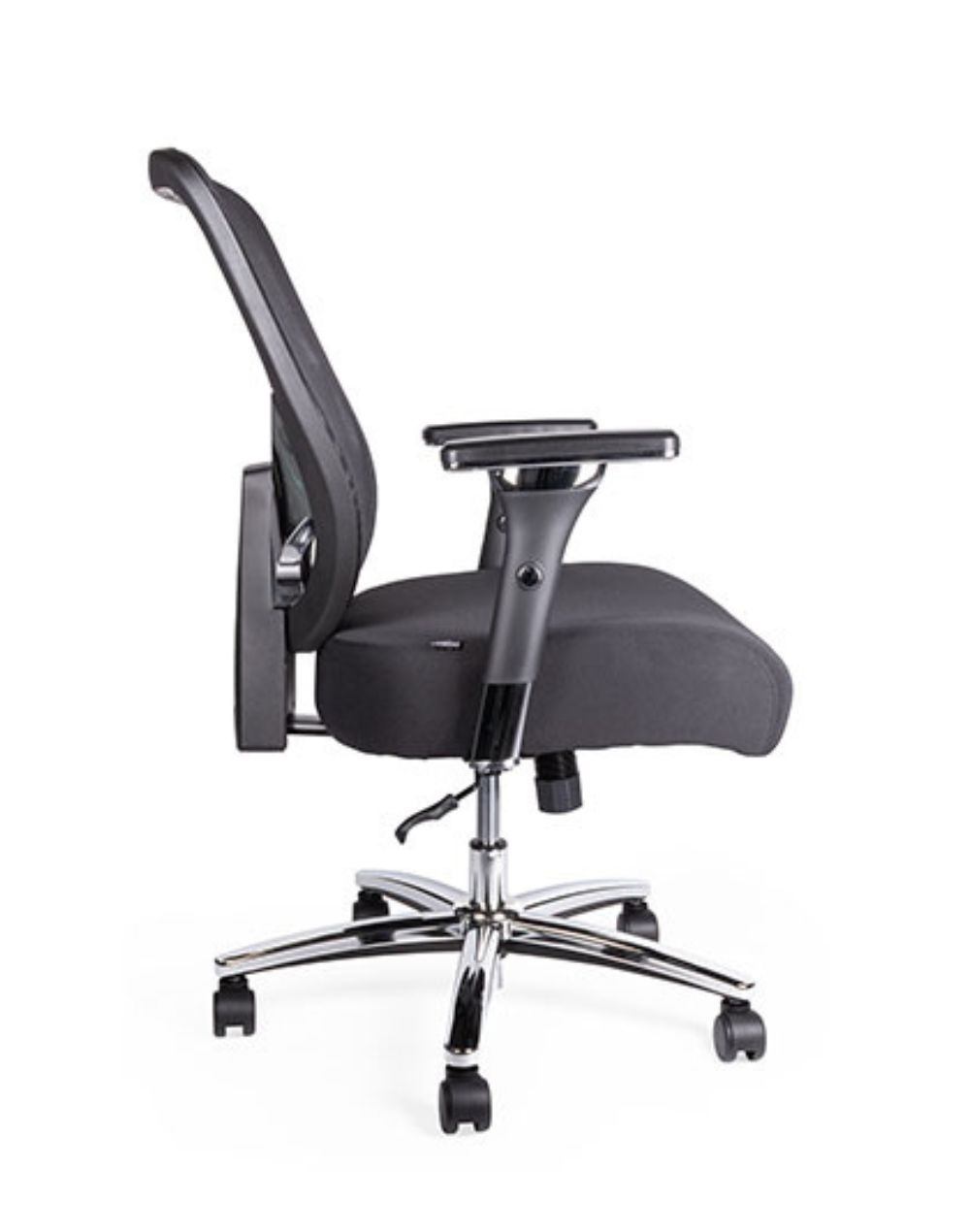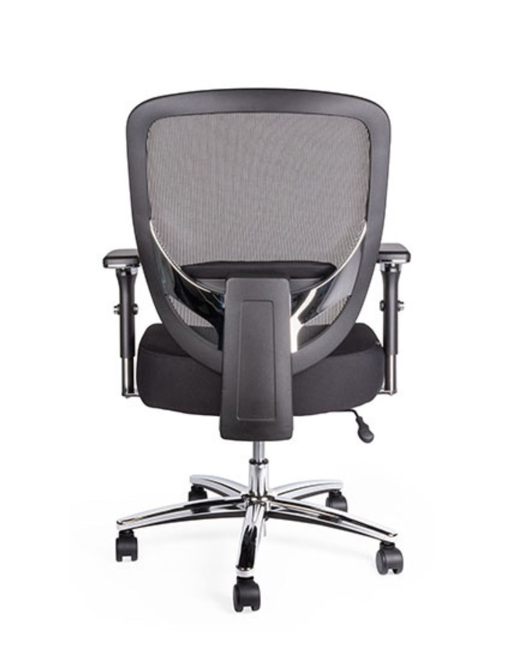 Tapiz respaldo en malla color negro y asiento en tela 100% poliéster, funda tapizada y pespuntada