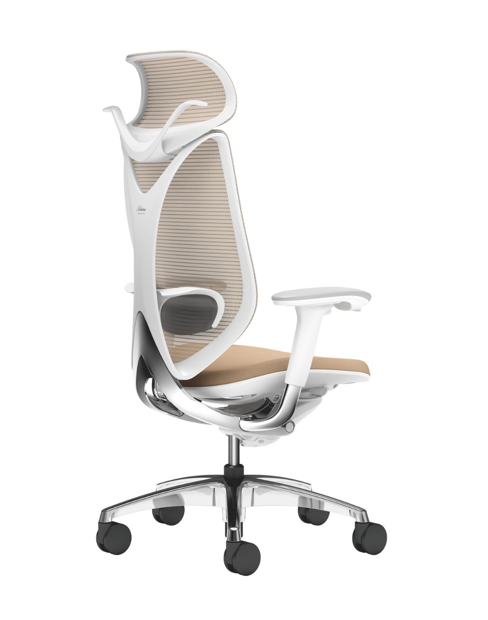 El diseño aerodinámico de la pieza se ve coherentemente en los brazos ajustables y en las patas de aluminio.